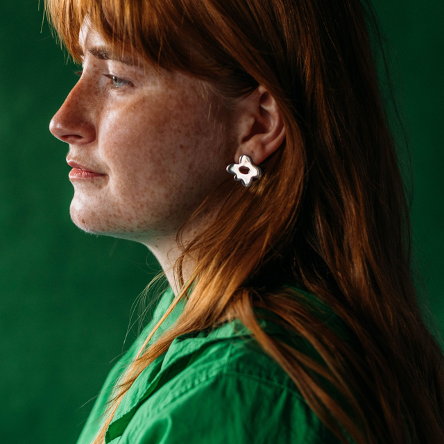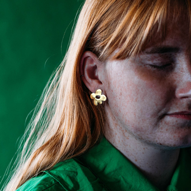 Handmade in ecosilver, these stud earrings measure 2cm x 2cm x 0.1cm.